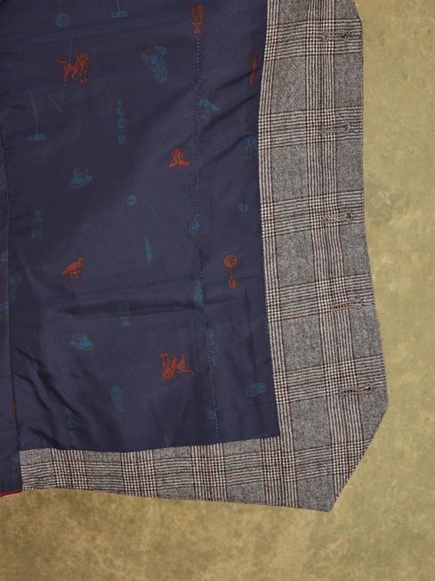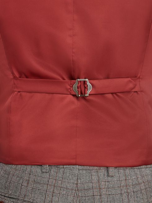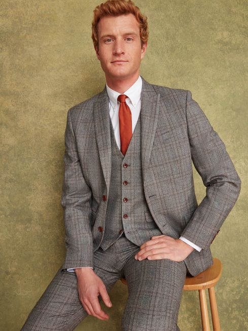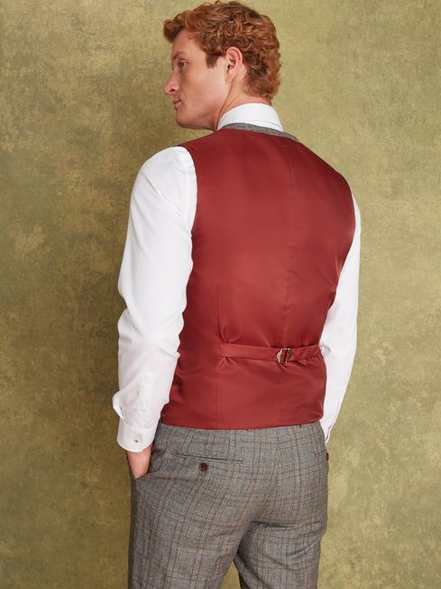 Grey/Rust Check Wool Slim Fit Suit Waistcoat