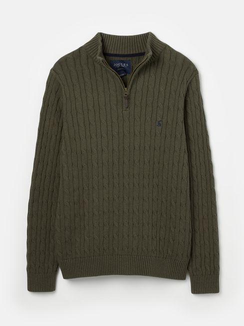 Cable Knit Green Quarter Zip Jumper