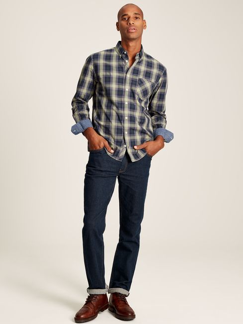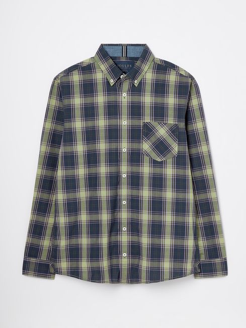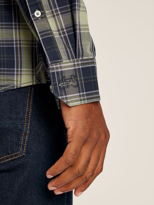 A checked shirt is one of those can't-go-wrong classics that every gent's wardrobe requires. The Goodridge is cut from a crisp cotton poplin and is adorned in a check that sits back with the autumn and winter seasons. It has an unfussy classic fit, a button-down fastening with button-down collar and cuffs and a patch pocket to the chest. For a distinctive finish, it has chambray trims and hidden embroidery to the cuff. Cotton poplin Classic fit Button down fastening Button down collar Single patch pocket to the chest Button down cuffs Chambray trims Hidden embroidery to the cuff Joules embroidered hare to the hem
