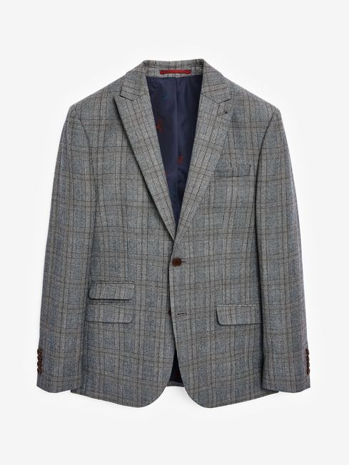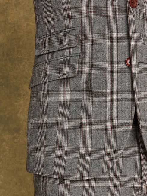Grey/Rust Check Wool Slim Fit Suit: Jacket