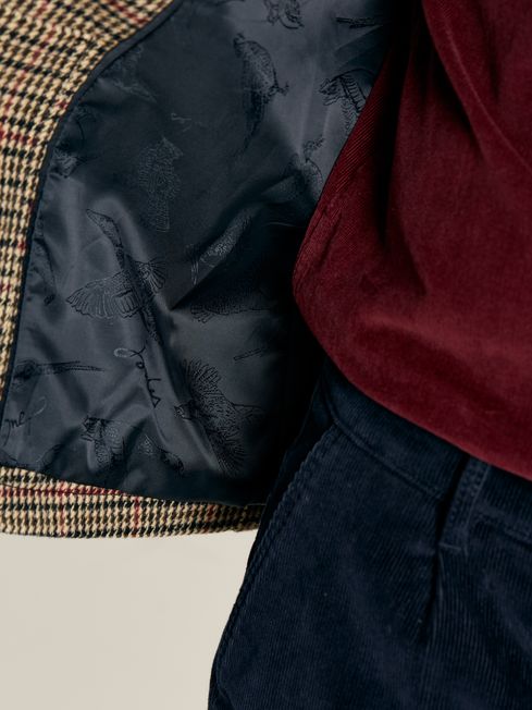 Tweed speaks to a country life more than any other fabric and as a brand with roots firmly planted in the British countryside, it's an important part of our autumn collection. The Marriot blazer combines a traditional look with a contemporary, relaxed fit so it can form part of your everyday wear with ease. It has three button fastenings, a lapel collar with buttonhole, three accent buttons to the cuffs and two front pockets. A pheasant printed lining adds a touch of the eccentric and two inside pockets make for a handy addition. Team it over rugby shirts and jeans for a pared back outfit or with chinos and a shirt for more formal affairs. If you're a fan of this style, then the matching gilet and jacket (of the same name) might take your fancy too. Tweed Relaxed fit Three button fastenings Lapel collar with buttonhole Two front slip-in pockets and two internal pockets Three buttons to each cuff Stitched back vent Embroidery under the collar Heritage pheasant lining Matching gilet and jacket available (just search Marriot)
