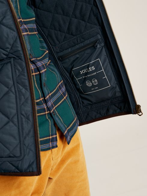 When the weather calls for an extra layer of warmth and the occasion calls for a subtle touch of style, our Maynard quilted jacket is just the ticket. It’s fleece-lined making it perfect for colder months, with a vented back for the ultimate in comfort. We've added extra fleece lining to the front pockets, and there's a hidden internal zip pocket too for all of your essentials. As a premium finishing touch, the collar, cuffs hem and pocket openings have been piped in contrasting cord. Diamond quilting (inside and out) Classic fit Fleece lining Two front pockets Internal zip pocket Cord binding to the hem, pockets, armholes and collar Metal zip fastening Back vents with popper fastenings Internal hanging loop