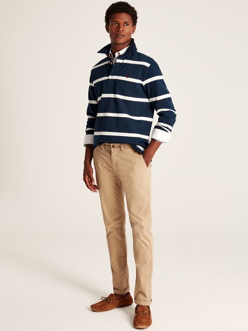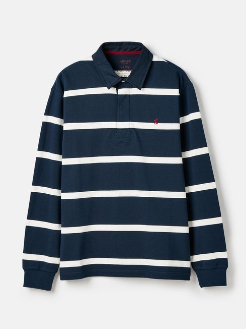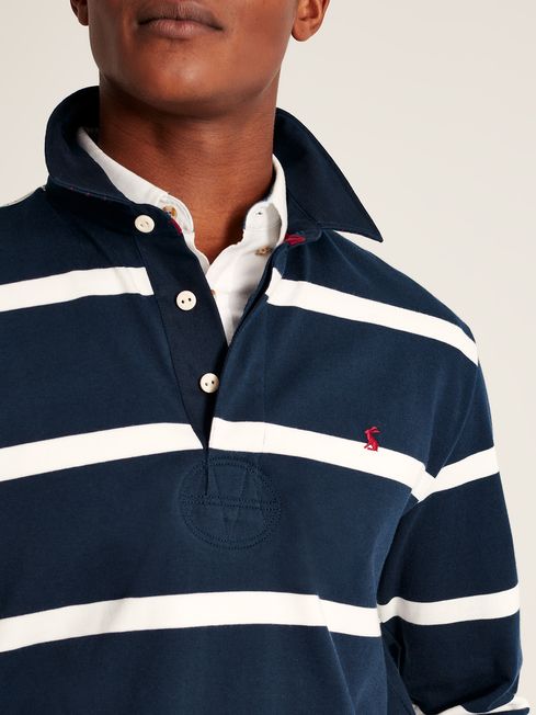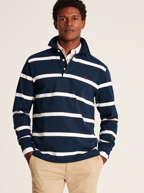 Add a sporty yet casual touch to your wardrobe with this traditional-style rugby shirt. A year-round piece it’s crafted from heavyweight jersey that’s built to last, has long sleeves making it great for layering and has a half button placket with a single exposed button. The twill collar has multi-stitch detailing underneath, the cuffs are ribbed for comfort and there’s a subtle embroidered hare to the chest as a nod to our brand. To ensure it goes with anything in your wardrobe we’ve adorned it in a classic stripe that will add a touch of style to the everyday. Our Onside rugby shirt has been a go-to style for many seasons and is a 'Mini Me' which means there’s a matching boys’ version too! Heavyweight jersey Classic fit Long sleeves Concealed button placket with single exposed button Classic twill collar with understitching detail Side vents Joules embroidered hare to the chest