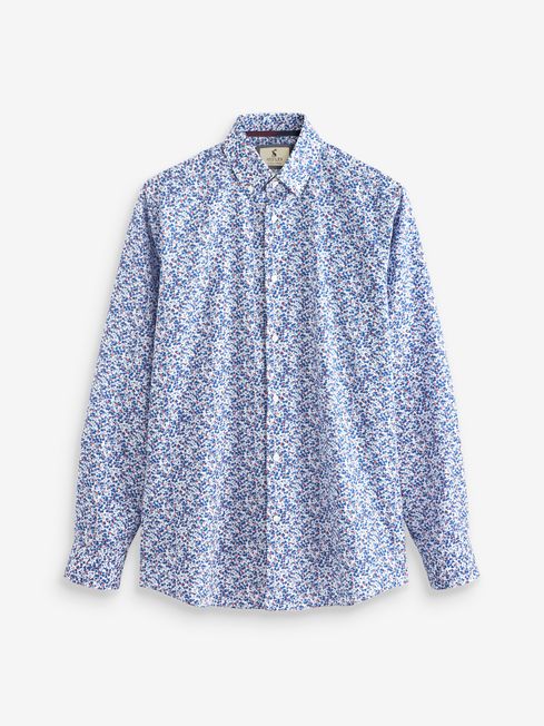 Made from 100% cotton, it features a split back yoke, mother-of-pearl buttons, and embroidery detail on the cuff.