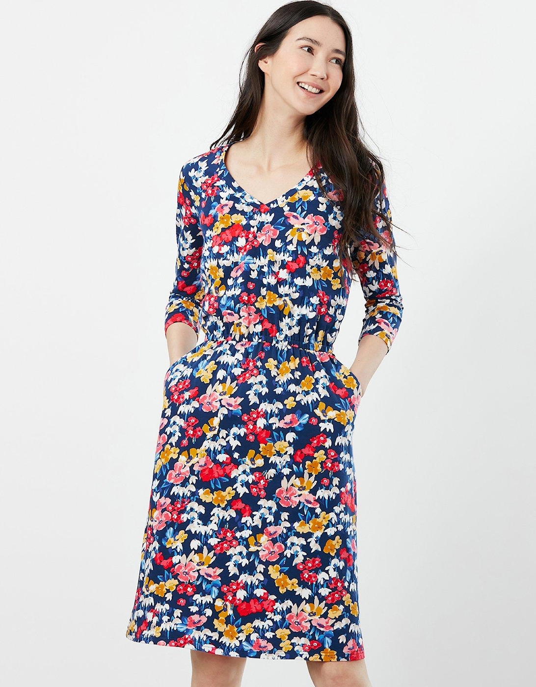 Joules Elasticated Waist Floral Jersey Dress - Blue