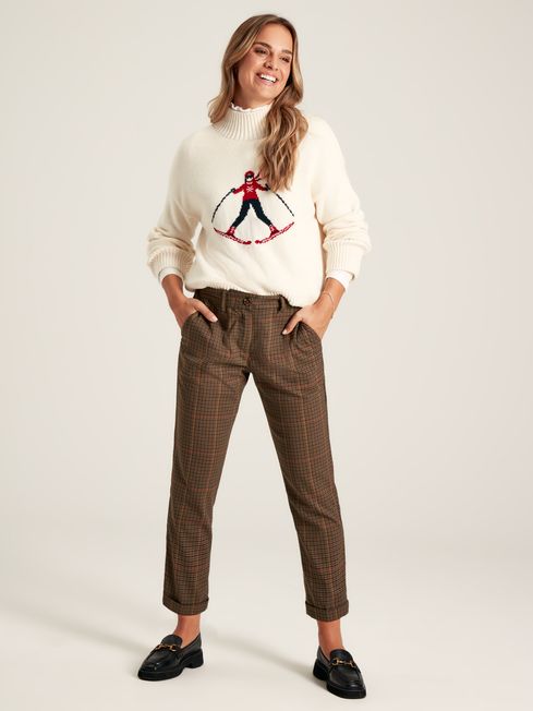 Inspired by the vintage ski graphics of yesteryear, the Abigail jumper nods to nostalgia while feeling contemporary through its relaxed fit. The charming intarsia features a skier mastering the snowplough - somewhat more gracefully than most! It feels as good as it looks with a soft cotton and wool blend, dropped shoulders, wide sleeves and a ribbed high neck. It's finished with a deep ribbed hem and cuffs. This is just the thing to wear, whether you're hitting the slopes (or après ski) for real, or exploring the snow blanketed hillsides closer to home. Cotton and wool blend Relaxed fit Dropped shoulders High ribbed neck Wide sleeves Deep ribbed hem and cuffs Vintage-inspired skier intarsia