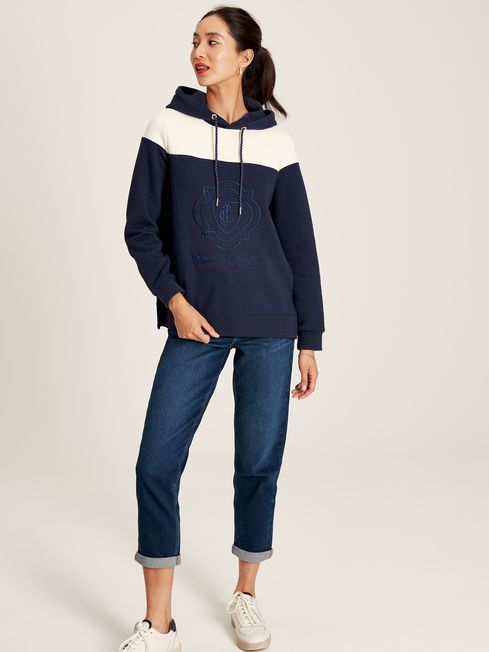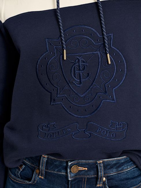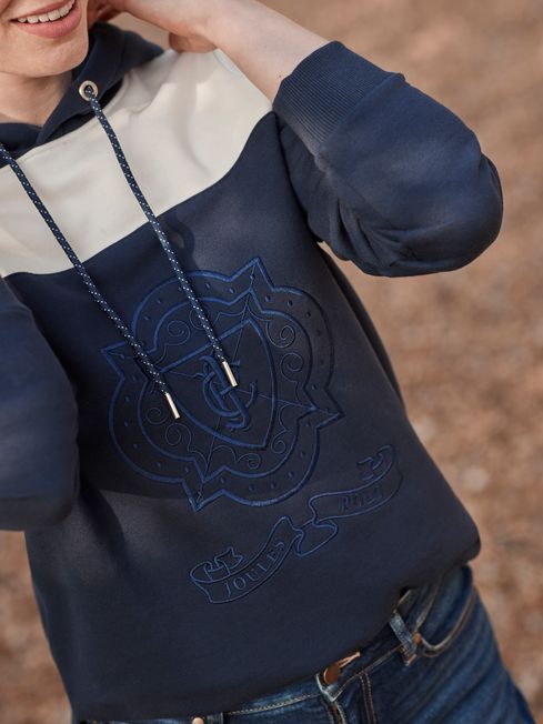 Sport a practical yet preppy look with the Alexa colour block hoodie. Crafted from heavyweight cotton jersey, it's a reliable layer for right now and later too. It has a boxy fit and deep side vents, making room for buildable layering underneath. The tonal 'Joules Polo' embroidered crest to the front and colour block design give it a sporty touch. The hood is lined with jersey, features adjustable drawcord ties with metal capped ends and is finished with 'Joules' embroidered to the edge. Cotton jersey Boxy fit Long sleeves Hood with Joules embroidery Functional drawcords with metal-capped ends Tonal 'Joules Polo' embroidery to the front Side vents Colour block design