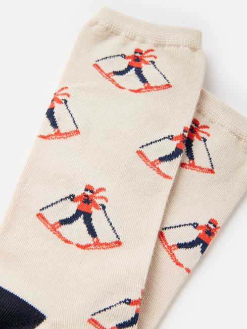 We wear socks almost every day, so at Joules we take every step we can to make sure ours are never boring. Our Excellent Everyday Socks are, well, excellent. They're made from a LENZING™ ECOVERO™ Viscose and cotton mix for super softness, they're fully breathable and feature unique designs you're sure to love. There's nothing worse than socks that rub against your leg, so we've added an elasticated ribbed top for extra comfort. Psst... there are multi-packs available too! LENZING™ ECOVERO™ Viscose LENZING™ ECOVERO™ fibers are derived from sustainable wood and pulp, coming from certified and controlled sources following the stringent guidelines of the Lenzing Wood and Pulp Policy Single socks Breathable construction Contrast heel and toe Unique-to-Joules designs One size to fit UK shoe size: 4-8