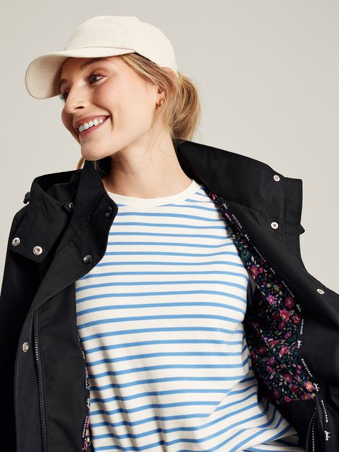 You won't just be enjoying the rain, you'll be singing in it with our Loxley waterproof coat. This wet-weather classic has long been a dog-walking go-to with its longline shape, fully taped seams and detachable hood with storm peak which all offer supreme coverage in a downpour. There's a drawstring waist and adjustable cuffs for a fit that is unique to you, along with front pockets with additional side entry and side vents with three popper fastenings. Inside you'll find a half jersey lining adorned in a beautiful hand-drawn print. Now, the only thing missing is your favourite pair of wellies. Fully taped seams for waterproofing and breathability Full zip and popper fastening Detachable hood with storm peak Front pockets with additional side entry Adjustable drawstring waist Adjustable cuffs Side vents with three popper fastenings Half jersey lining with hand-drawn print Length: 97cm (based on a UK size 12)