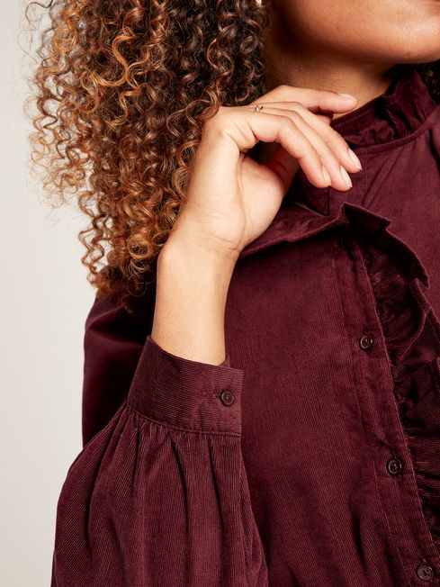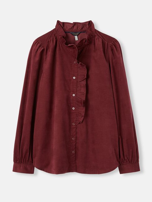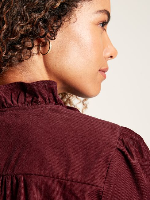 Corduroy is the perfect fabric for the colder months, thanks to its heavier weight, and durable construction. Our Collette cord blouse brings feminine charm through the pretty frill details to the collar and chest and the structural gathering to the shoulders, back and cuffs that create a subtly flouncy silhouette. The cuffs have been finished with a keyhole button fastening. Style alone with neutral-toned trousers, or throw on a knitted vest for an autumnal look that's sure to turn heads. Cotton corduroy Long sleeves A-line shape Button-down front Gathers to the shoulders, cuffs and back yoke Frill detailing Keyhole button fastening at cuff Bust darts