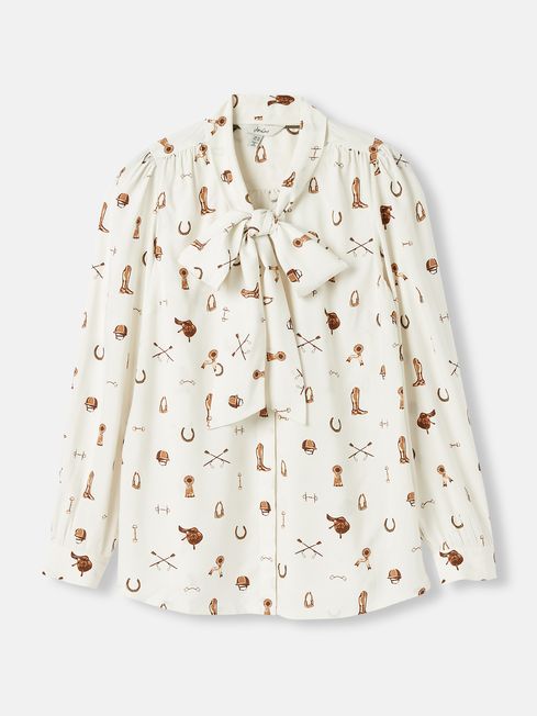 The Everly blouse harks back to our heritage combining an opulent print with quality fabric that will ensure it's a beloved part of your wardrobe for a long time. It's crafted from lightweight satin viscose, has long raglan sleeves with button cuffs and a concealed button placket. For a classic yet elegant touch, it's finished with a pussybow and an intricate hand-drawn print. Style under blazers for a look that's full of charm. Satin viscose Classic fit Long raglan sleeves Button cuffs Concealed button placket Pussybow tie Forward shoulder seams with gentle gathering Hand-drawn print