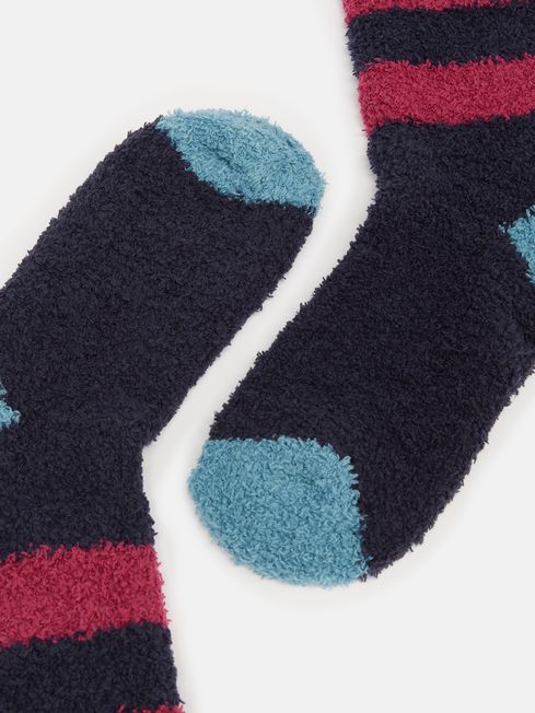 Whether it's for snuggling in front of the fire in your PJs, or pairing under your boots for a wintery walk, these fluffy socks are a great cold-weather companion for your feet. They're super soft with an elasticated cuff for comfort and feature an eye-catching design you're sure to love. They're finished with a contrasting heel and toe and a Joules branded tab to the cuff. They make a wonderful gift, too. Super soft, fluffy fabric Great for gifting Elasticated cuff Contrasting heel and toe Joules branded tab to cuff One size to fit UK shoe size: 4-8