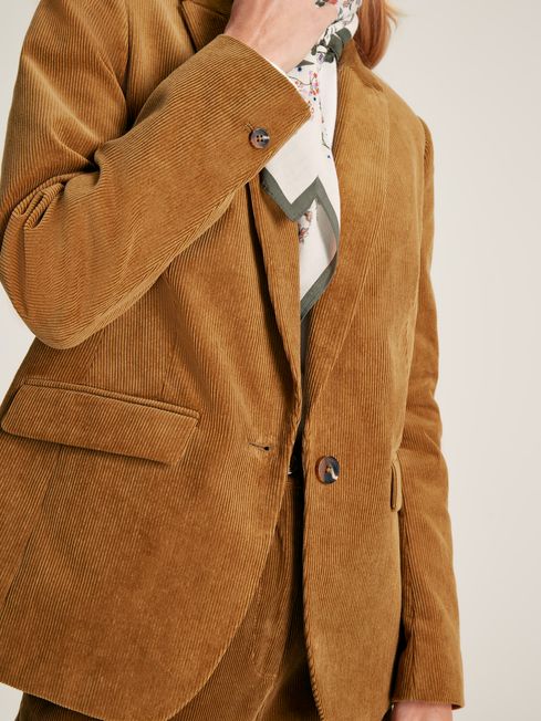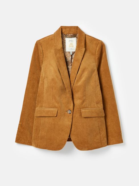 You can finish off your outfit with a quintessentially British flourish thanks to our heritage-inspired Holton blazer. Made from a classic cotton cord, it features a single button fastening at the waist with curved seams to create a slim, tailored fit. It has button cuffs, two flap pockets to the front and a handy hidden pocket to the inside. The silky polyester lining has a vintage paisley print. Cotton corduroy Flap pockets Faux horn buttons Single button fastening Button cuffs Felt collar stand Paisley printed lining Slim, tailored fit Length: 72cm (based on UK size 12)