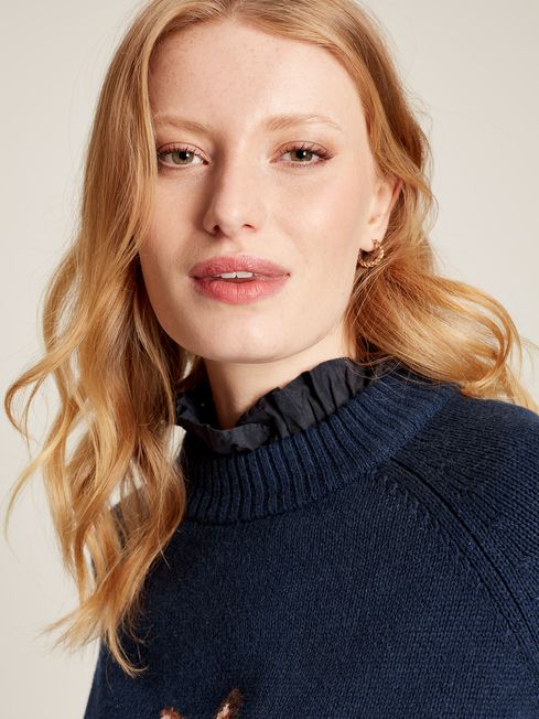 Margot Navy Blue Intarsia Knit Jumper