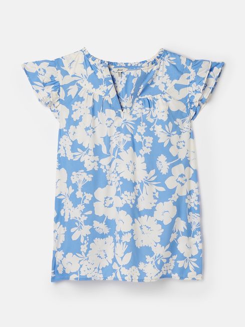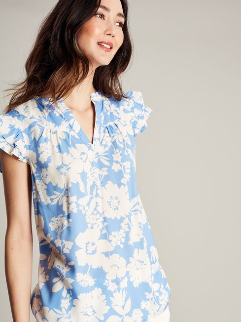 When the warmer months come around, be wardrobe ready with a few statement tops. Our Maxie blouse is adorned in a bold print for the season and will pair perfectly with denim shorts, jeans, skirts and more. It has exaggurated frilled sleeves for a voluminous touch and a flattering notch neck with a frilled trim.