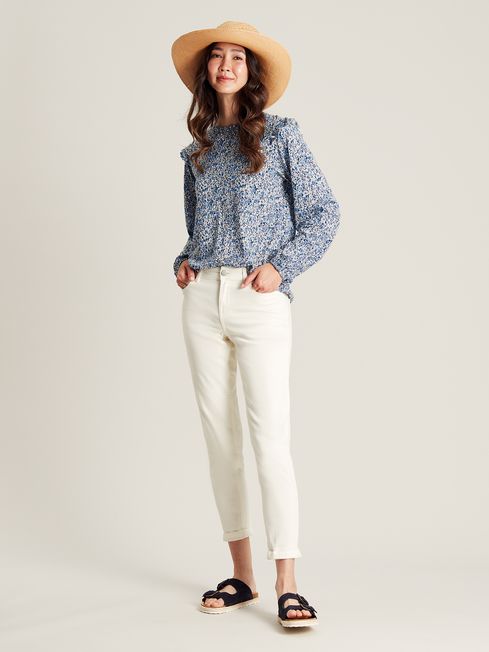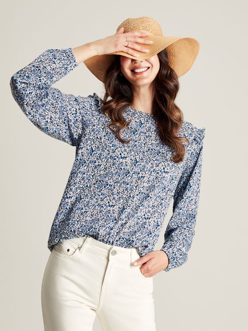There are many things we love about blouses, but at the top of our list is the fact they can be styled for anything from the office to the weekend. Our Samara blouse will quickly become your new favourite with its shirred cuffs, frilled shoulders and statement print. Wear it with smart trousers or jeans - either way, it's a quick and easy way to elevate any summer look. Jersey blouse Long sleeves Frill detail to the shoulders Round neck Shirred cuffs Hand-drawn print Joules hare embroidery