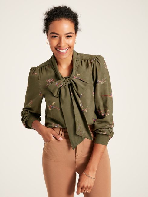 Everly Green Tie Neck Blouse