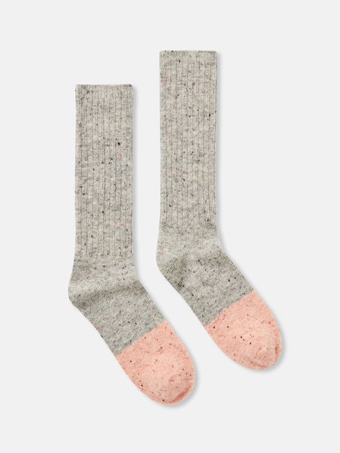 Boot Sock Pink/Grey Wool Blend Colourblock Socks