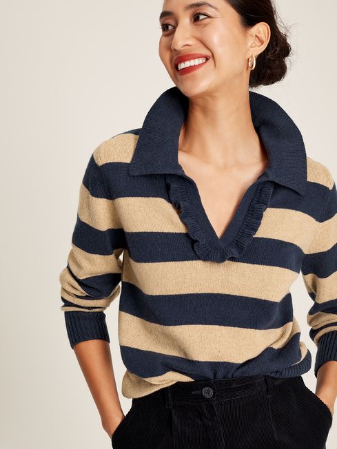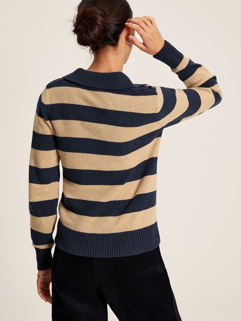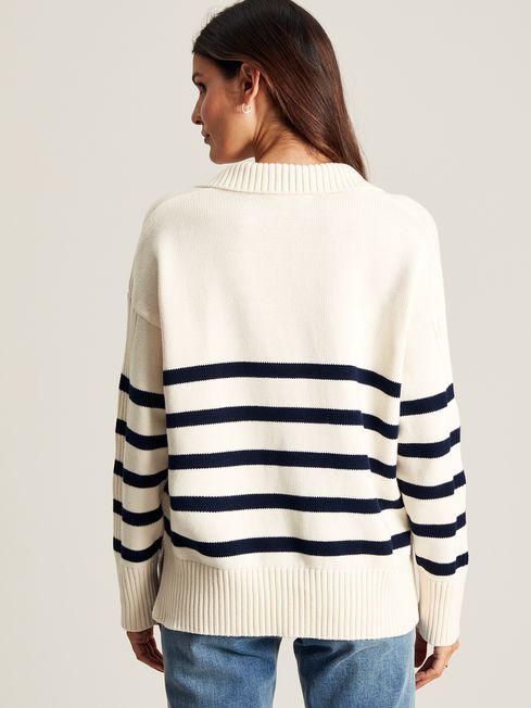 Emelia Cream Navy Blue Striped Collared Jumper