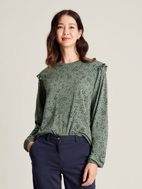 Samara Green Jersey Frill Sleeve Top