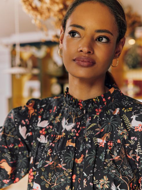 Rhea Black Frill Neck Blouse