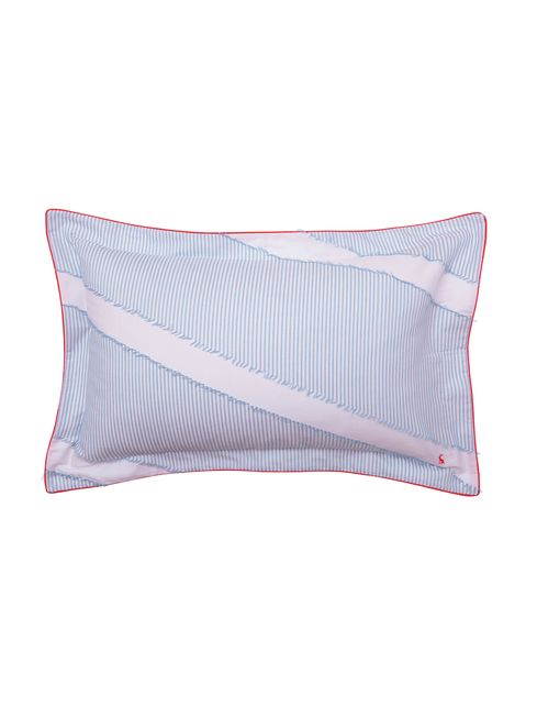 Opt for a cool, calm and collected look in your bedroom with this jacquard stripe bedding set. Chambray blue and white ticking stripes run diagonally across the bed. On the reverse is a plain white to keep things fresh and minimalist. This set comes with two matching Oxford pillowcases (single beds come with one). 100% Cotton 180 TC Reverse.
