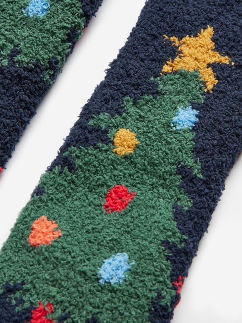 There's nothing quite like sporting a pair of novelty socks in the lead-up to Christmas. This pair for little ones is super soft (perfect for those cold December nights) and features a colourful 'Merry' on one sock and 'Bright' on the other. They're finished with a ribbed cuff and branded tab. Knitted novelty socks. 'Merry' and 'Bright' design Ribbed cuffs Joules branded tab