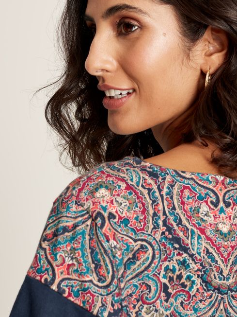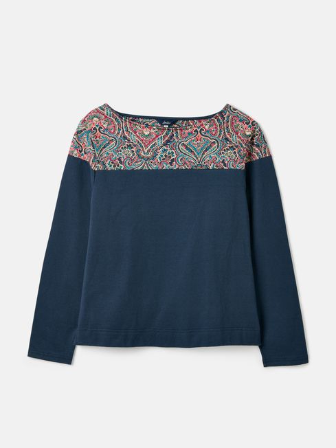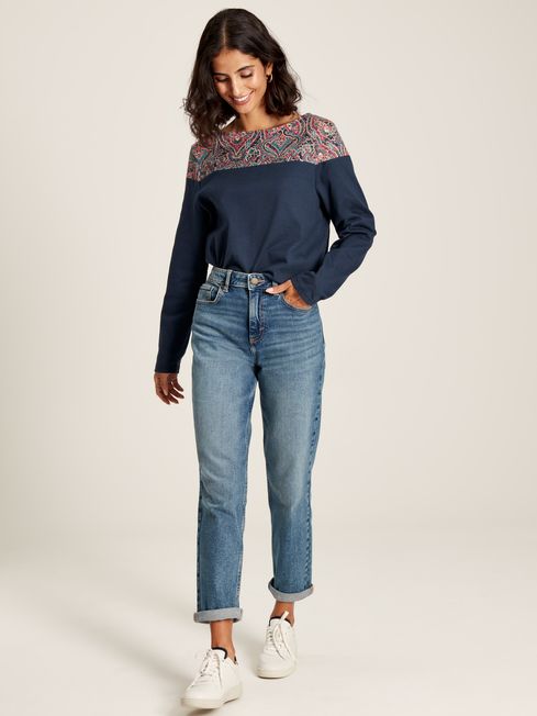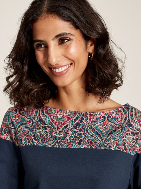 Play with prints this season with the Harbour top. It has slim-fit sleeves, a relaxed body and boat neck, making it a great base for layering under sweatshirts, knitwear and jackets. The hand-drawn print adds an always welcome pop of colour that will make you smile every time you wear it. It's finished with side splits faced with herringbone and a Joules embroidered hare to the hem. This is a true love now and forever piece. Cotton jersey Relaxed fit in the body Long, slim-fit sleeves Boat neck Side splits with herringbone facing Hand-drawn print Joules embroidered hare to the hem