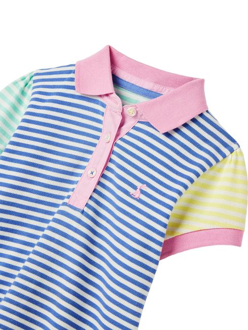 This pretty polo is perfect for summer and will be a huge hit with your little one. It's got short sleeves, a button placket and a contrast collar and cuffs. It's adorned in stripes and finished with a Joules embroidered hare to the chest.