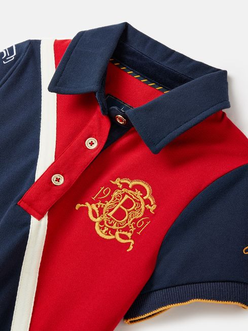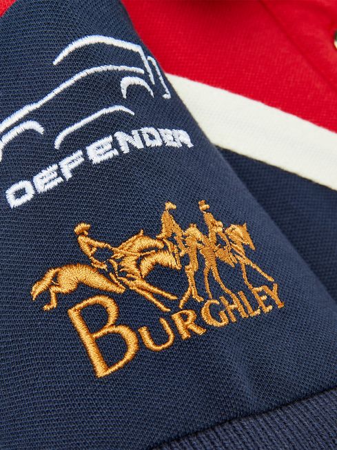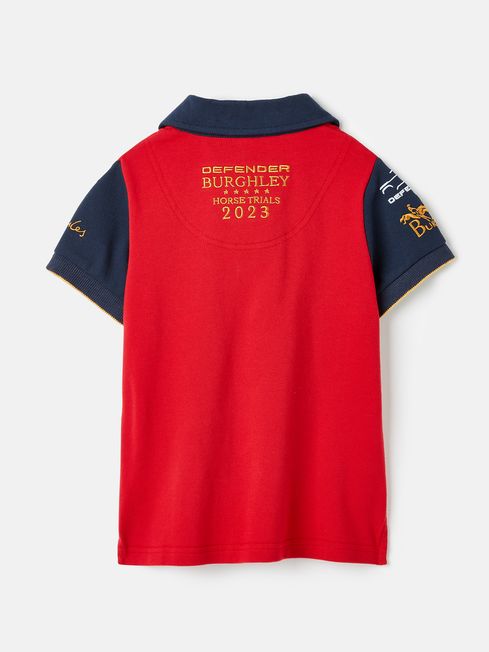 The Burghley Horse Trials is an event for the whole family, so it seems only right that the official collection involves the smallest of horse lovers too! This is the official event polo shirt for little ones. It uses the eye-catching colour palette for this year's collection, and has a contrasting colour sash to the front and a button placket. A prestigious occasion such as Burghley deserves the most special details, so there's event embroidery to the chest, sleeves and outer back neck all in a gold thread. For a plush finish, the undercollar and collar stand is velvet. The addition of the 2023 embroidery makes this a true commemorative style. We look forward to seeing you and your well-dressed little one there! Part of our official Burghley Horse Trials collection Cotton Short sleeves Button placket Event embroidery to the chest, sleeves and outer back neck Velvet detail to the undercollar and collar stand| Contrast colour diagonal sash to the front Side splits