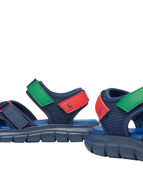 Summer means sandals, and this pair will be your little one's favourite. The multiple grip fastening straps ensure a secure fit that makes them great for running around during all their sunshine adventures. They're lightweight for a comfortable fit and have a flexible moulded outsole with a ridged sole for grip. We've added a splash of colour to the straps and embossed a Joules hare to the heel.