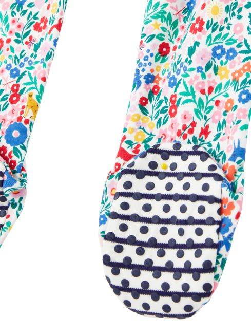 We're sure every new parent has asked why babygrows have so many pesky poppers. Us too. We’ve designed this all-in-one with an asymmetric front zip that fastens in a jiffy and features a tab at the top to ensure the puller is tucked neatly away from the baby’s skin. We find them especially useful for bleary-eyed night-time nappy changes. Made with organically grown cotton.