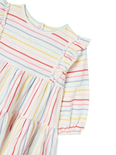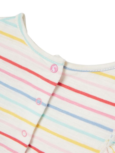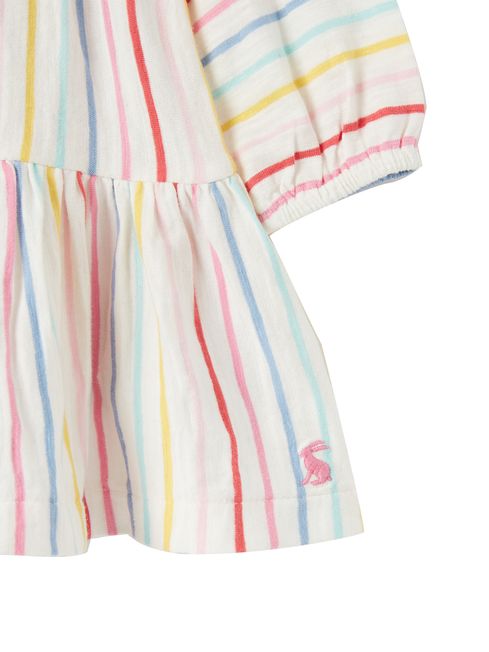 If this is the baby's first summer (or even if it's not) this dress will make it one to remember. It's adorned in a print that's bursting with summery colours, features frilled sleeves that are oh-so-pretty and has a tiered skirt for a fun, full shape. We've finished it with popper fastenings to the back and a Joules embroidered hare hidden at the hemline.