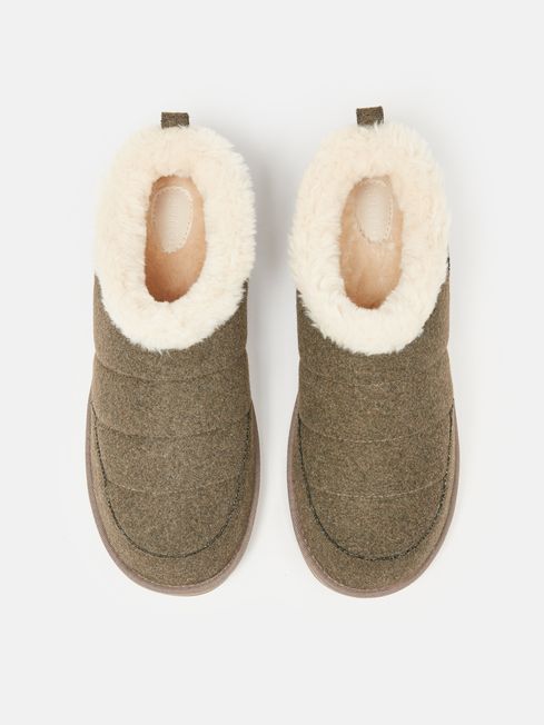 These slippers are a go-to for your at-home attire. The uppers are crafted from a textured felt while a faux shearling lining and cuff offer ultimate comfort for your feet. A rubber EVA outsole ensures they are hardwearing enough to wear outside - putting the bins out or enjoying a morning alfresco coffee perhaps? They're finished with a pull tab to the heel along with branded detailing to the insole and heel counter. Felt uppers Faux shearling lining and cuff EVA rubber outsole with ridges for grip Heel pull tab Joules branded label to the inside