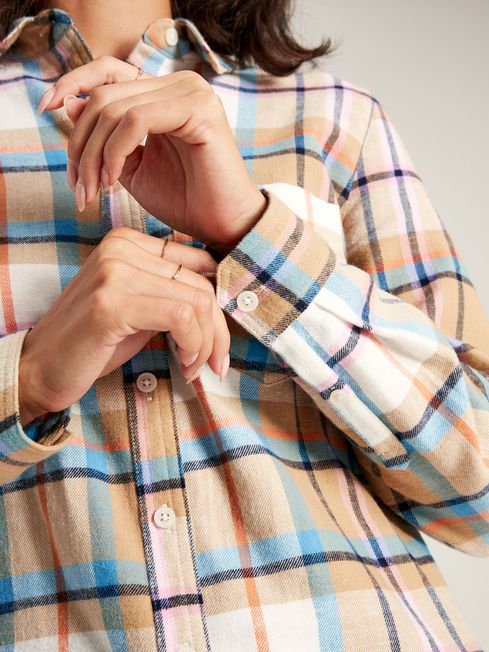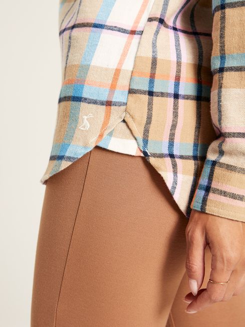 The Lorena shirt is a style that is always a joy to bring back every autumn and winter season. It is crafted from a cotton fabric that has been brushed for a supremely soft feel and features a classic checked pattern. The curved hem and dipped back offers a feminine twist, while the longline shape and relaxed fit make it perfect for pairing with skinny jeans or leggings. It carries classic shirt features too including a collar, button-down fastening, button cuffs and a patch pocket to the chest. As with all our garments, it's completed by a Joules embroidered hare as a mark of quality you can trust. Cotton Relaxed fit Brushed back fabric for a soft hand feel Longline Full button-down fastening Button cuffs Collar Single patch pocket to the chest Curved hem Dipped back Joules embroidered hare to the left cuff (as worn)