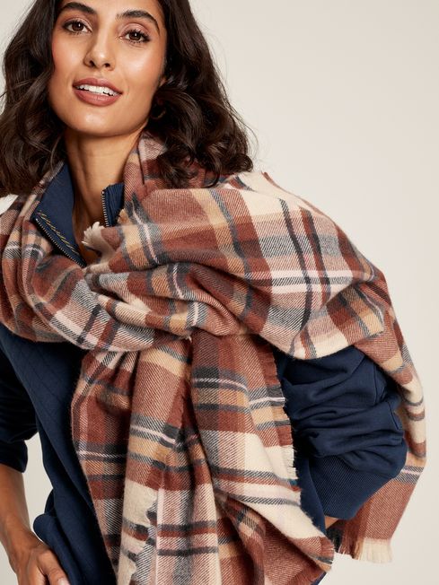 A blanket-style scarf is just the thing you need for when the cold British weather truly sets in. The Bracewell is an oversized rectangle shape offering versatile styling and has a classic checked pattern. It's finished with frayed edges on all sides and a Joules-branded tab to the edge. Blanket-style scarf Oversized Checked Frayed edges on all four sides Joules branded label to the edge Dimensions: 185 x 85cm