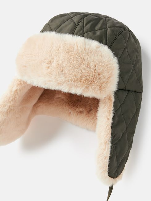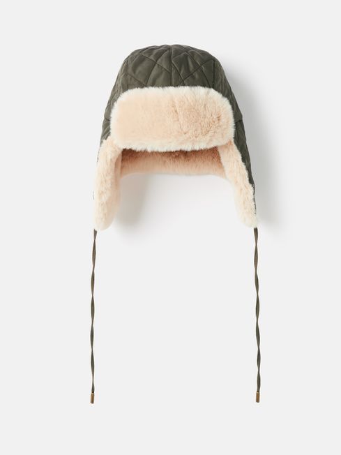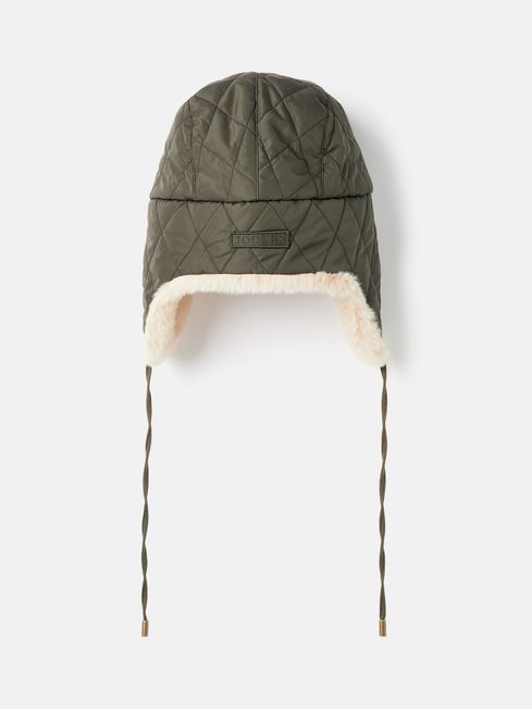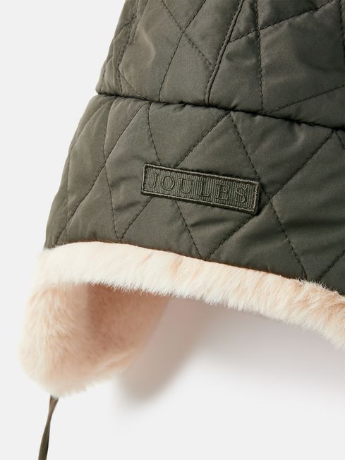 When the British winter delivers frosty mornings and (hopefully) snow, you'll be glad for the Eira hat. It has a traditional trapper design with ear flaps and hanging ties with metal stoppers. The outer features a diamond quilt while the inside has a full faux fur lining for supreme warmth. Stylish yet oh-so-practical. Faux fur Diamond quilted outer Faux fur lining and cuff Ear flaps with faux fur lining Ribbon ties with metal stoppers Joules branded tab to the back