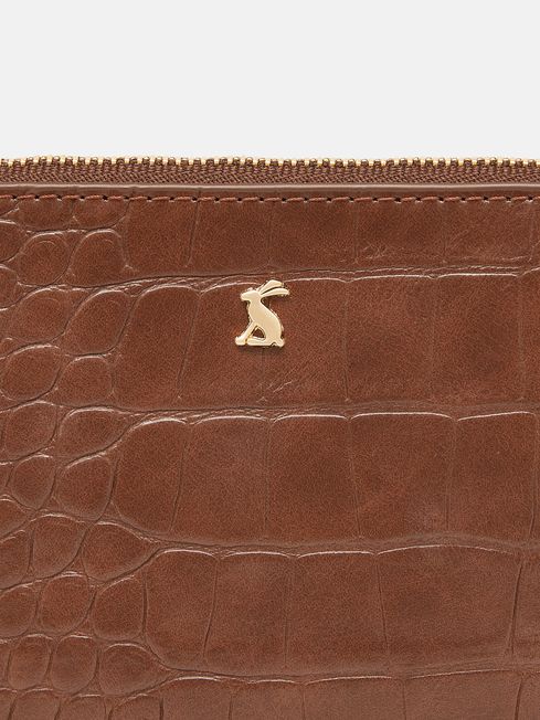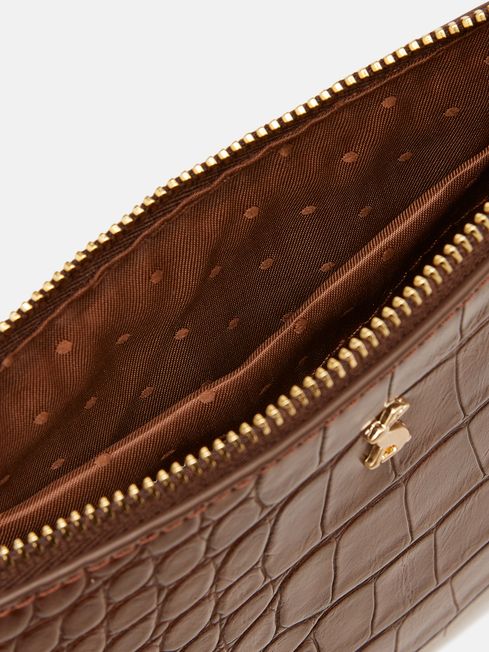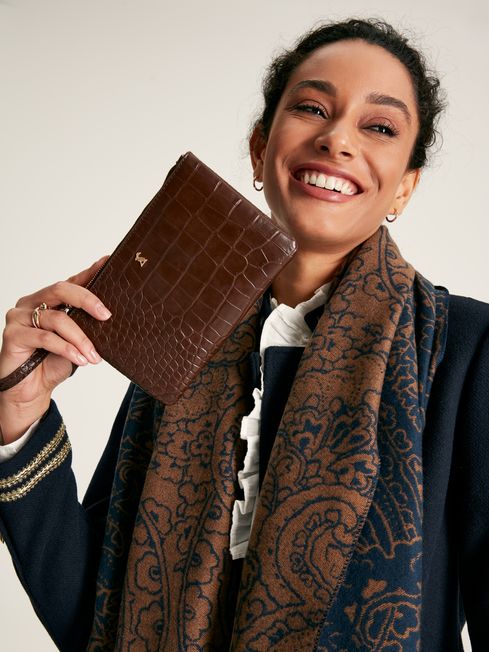 Crafted from a high shine faux leather and featuring a croc-effect pattern, the Eliza wristlet pouch will elevate evening outfits. It has a slimline wrist strap for easy carrying, a metal zip fastening and an internal slip-in pocket. A Joules metal hare decal is a lovely finishing touch. Bring a little joy to someone you love and give this as a gift. It'll certainly go down a treat. Faux leather Croc pattern Wristlet strap Metal zip Internal slip-in pocket Joules metal decal to the front