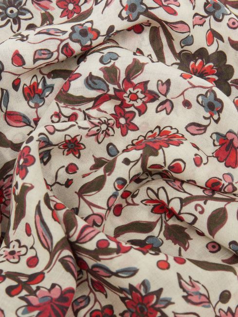 Elevate everyday hairstyles with the Elsie hair scarf. The opulent hand-drawn print and distinctive colour palette makes it a true statement piece. It's crafted from lightweight viscose that has a luxuriously soft hand-feel and makes for versatile styling. Looking for a few ideas of how to wear it? We've got you covered. Try wrapping it round a ponytail into an exaggerated bow, twisting it around a bun, weaving it into a plait or tying it into a headband. Viscose Soft hand-feel Hand-drawn print Rolled edges Measurements: 65cm x 65cm