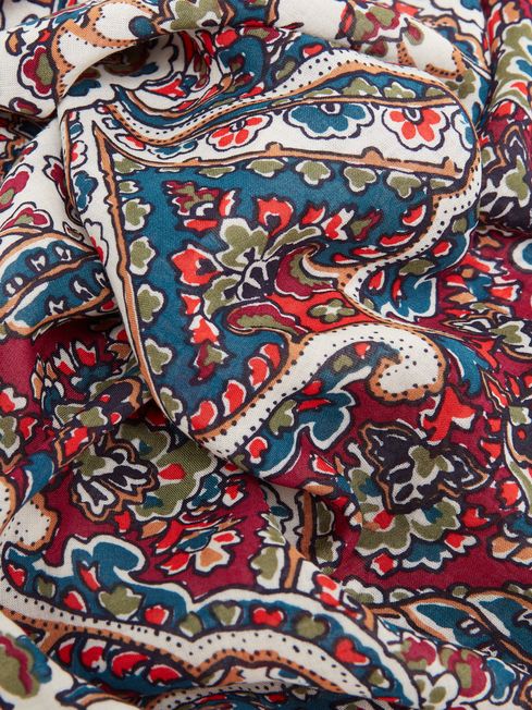 Elevate everyday hairstyles with the Elsie hair scarf. The opulent hand-drawn print and distinctive colour palette makes it a true statement piece. It's crafted from lightweight viscose that has a luxuriously soft hand-feel and makes for versatile styling. Looking for a few ideas of how to wear it? We've got you covered. Try wrapping it round a ponytail into an exaggerated bow, twisting it around a bun, weaving it into a plait or tying it into a headband. Viscose Soft hand-feel Hand-drawn print Rolled edges Measurements: 65cm x 65cm
