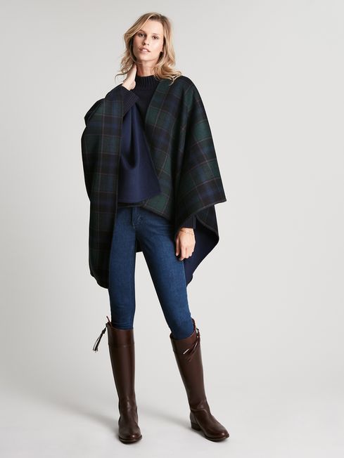 Get two styles in one with this reversible knit cape. One side features a classic checked pattern while the other is a plain neutral colour for versatile styling. Its relaxed shape and draped fabric make it easy to throw on over a long sleeve T-shirt and jeans.