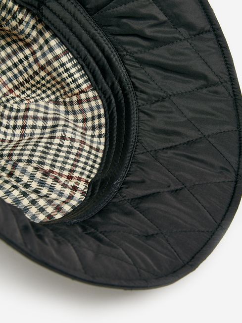 Embrace the outdoors with our Harriet quilted bucket hat, the perfect accessory for cold-weather jaunts. Its shower resistant fabric has diamond quilting for extra warmth, and features an adjustable toggle at the brim for a personalised fit. The inside has been lined with a heritage checked lining. Bucket hat Quilted Adjustable toggle for personalised fit Shower resistant Checked lining
