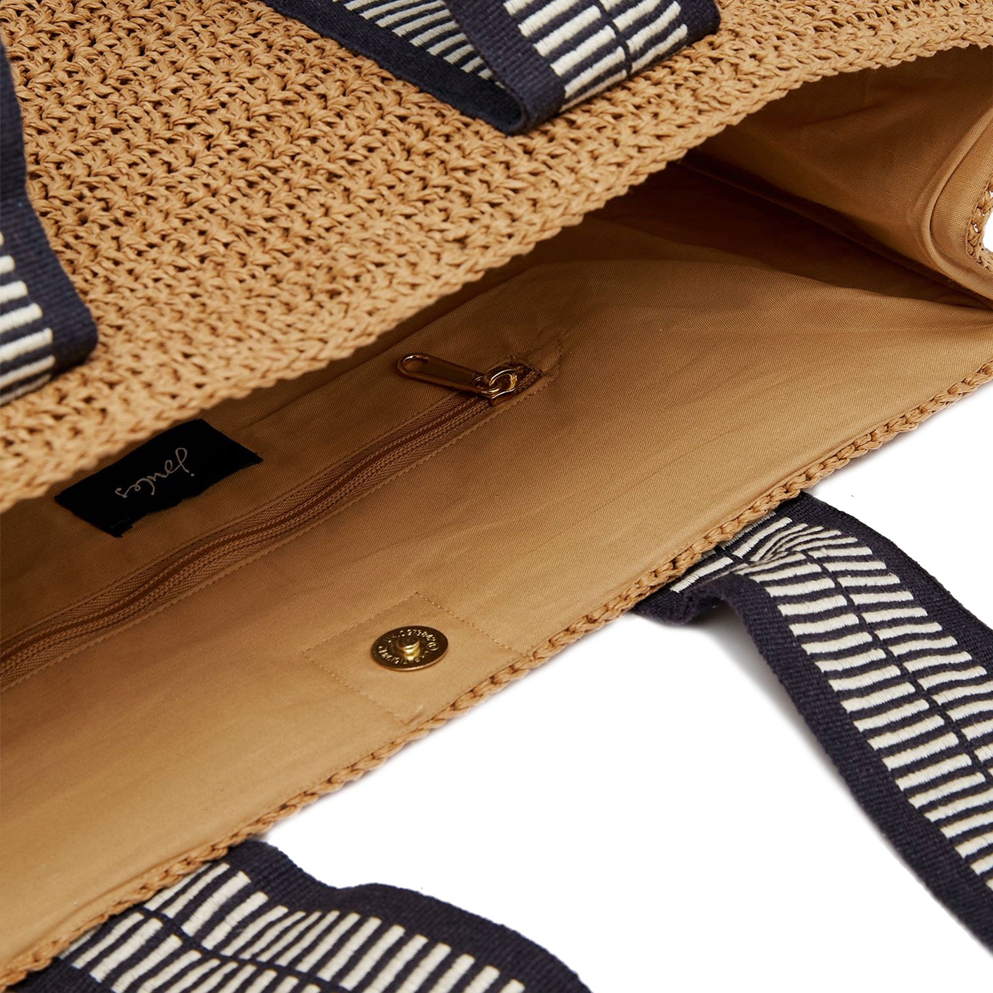 This stylish tote bag from Joules is 100% paper and features a full cotton lining, webbing shoulder straps, metal popper fastening, and an internal zipped pocket. The Joules branded label gives it a fashionable and modern look. Crafted with durability and functionality in mind, this tote bag is perfect for carrying your everyday essentials.