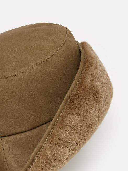 Accessorise your countryside attire with our Lottie bucket hat, perfect for outdoor pursuits in colder weather. The outer is a traditional dry wax that is shower resistant (perfect for light bursts of rain), whilst the brim is lined with cosy faux fur for a touch of luxury and warmth. The inner lining has a hand-drawn equestrian-inspired print and has been finished with a Joules branded label. Bucket hat Wax effect Faux fur-lined brim Printed lining Shower resistant Joules branded label to inner crown Fabric binding around brim