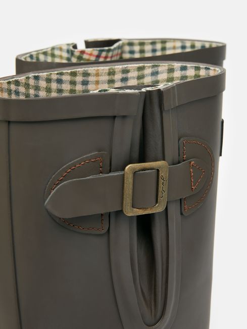 When the great outdoors calls your name, our Houghton wellies are on hand (or foot) to provide you with all the style and practicality you need to enjoy a day out in nature. Whether you're walking the dog, taking a countryside jaunt or strolling around the stables, these are a pair you can always count on. Crafted from hardwearing matte-effect rubber, these feature specially-designed water-dispersing outsoles for superior grip, as well as an adjustable side gusset with a buckle fastening for the perfect fit. As a touch of heritage-inspired style we've added a traditional check print to the lining, and a branded leather badge to the front. Natural rubber Tall height welly Waterproof. Heritage check lining Adjustable side gusset Water dispersing outsoles Removable insole Branded leather badge Raised toe bumper Covered By Our One Year Welly Guarantee