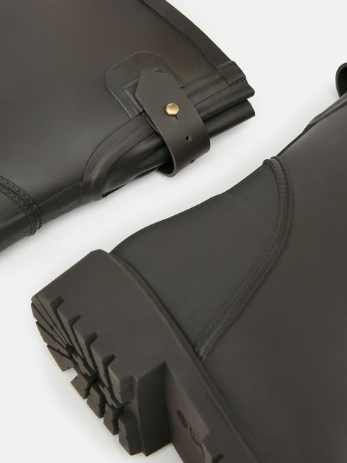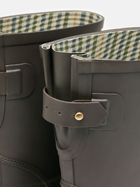 From walking the country show circuit to walking the dogs on a drizzly afternoon, our Wistow mid-height wellies will keep you dry, protected and looking pretty snappy too. They have an adjustable elastic gusset for the perfect fit on the calf and feature specially-designed water dispersing outsoles for superior grip. As a touch of heritage-inspired style we've added a traditional check print to the lining, a branded leather badge to the front and a matte textured effect to the heel counter. Natural rubber Mid-height Waterproof Heritage check lining Adjustable back gusset with strap Water dispersing outsoles Removable insole Branded leather badge Matte textured rubber heel counter Covered By Our One Year Welly Guarantee