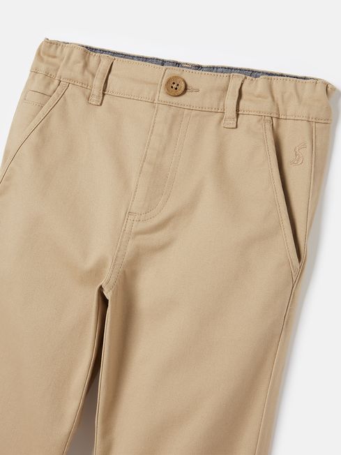 When the occasion calls for your little one to dress dapper, the Cody chinos will make a reliable choice. They're crafted from a brushed cotton blend which is supremely soft, and have slanted side pockets, a zip fly fastening, turn-up cuffs with colour pop tape and belt loops. We want them to wear (and love) these for as long as possible, so we've added internal elasticated waist adjusters that can be made looser as they grow. They're finished with a contrasting internal waistband, a Joules embroidered hare and a welt pocket to the back. Cotton blend Brushed back fabric Classic fit Internal waist adjusters for longer wear Zip fly fastening Slanted side pockets Welt pocket to the back Belt loops Turn-back cuffs with coloured tape Joules embroidered hare to the waist