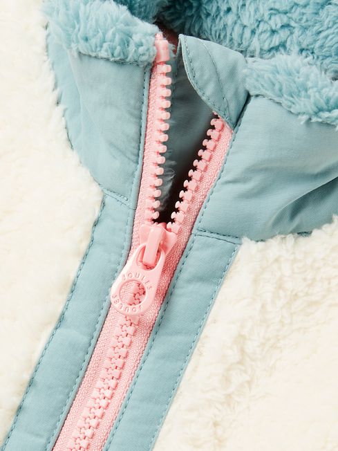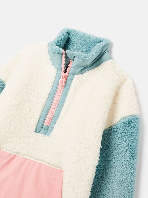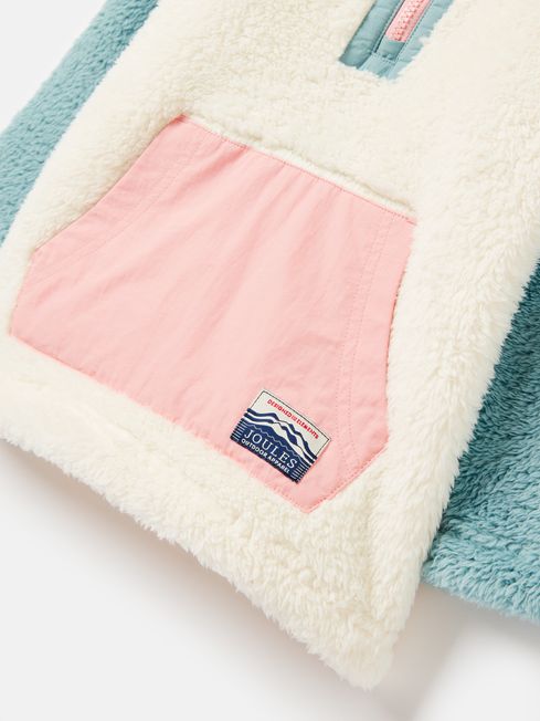 When the temperatures drop but the outdoor fun continues, the Always Cosy fleece will be their favourite thing to wear. It's crafted from fleece so soft they'll feel as though they're wearing a cloud and has a funnel neck for snuggling into. As practical as it is warm, it has a quarter zip fastening with silicone pull, a woven kangaroo pocket to the front and a relaxed fit leaving room for handy layers underneath. It's finished with Joules branded embroidery behind the neck and a woven tab to the pocket. Cosy fleece Relaxed fit Dropped sleeves Funnel neck with embroidered branding to the back neck Half zip fastening with silicone pull Colour block design Woven kangaroo pocket with Joules tab