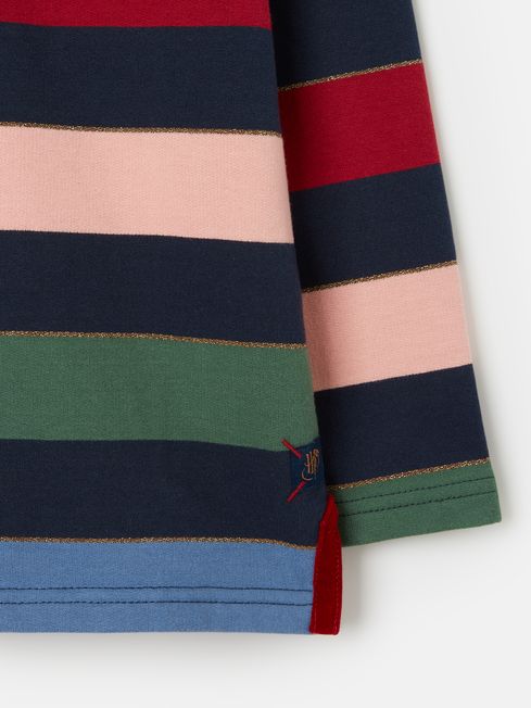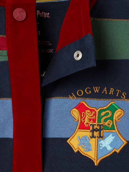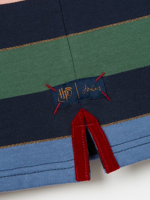 Combining preppy stripes with a Hogwarts School Crest™, this sweatshirt will be a guaranteed hit with your little one. Harry Potter™ fans will delight in spotting details inspired by the franchise, including Hogwarts ™ embroidery to the back, the house colours (with a twist) and velour lightning bolt elbow patches. It's crafted from quality cotton jersey, has a relaxed fit and a funnel neck with a concealed zip placket. Elevating it to magical levels is the glittering metallic thread woven within the stripes. This is a style they'll cherish forever (well, until they grow too big for it, anyway). We'll let you in on a secret... there's a matching dress - just search for the Moaning Myrtle™ dress. Part of our official Harry Potter™ collection. Cotton jersey Relaxed fit Funnel neck with a quarter zip fastening Hogwarts School Crest™ embroidered to the chest Velour lightning bolt elbow patches Hogwarts™ metallic embroidery to the back Metallic details WIZARDING WORLD and all related trademarks, characters, names and indicia © & ™ Warner Bros. Entertainment Inc. Publishing Rights © JKR. (s23).