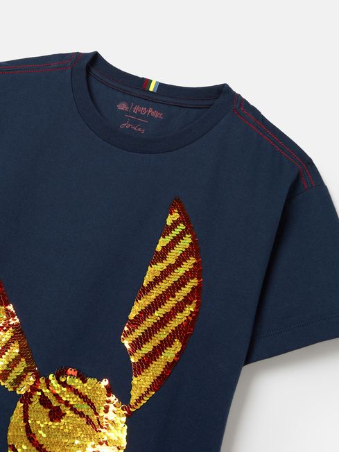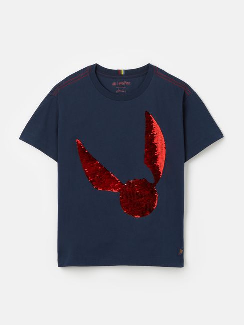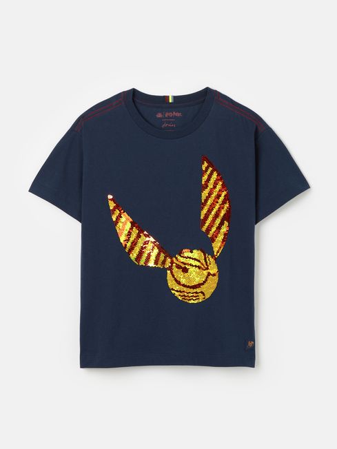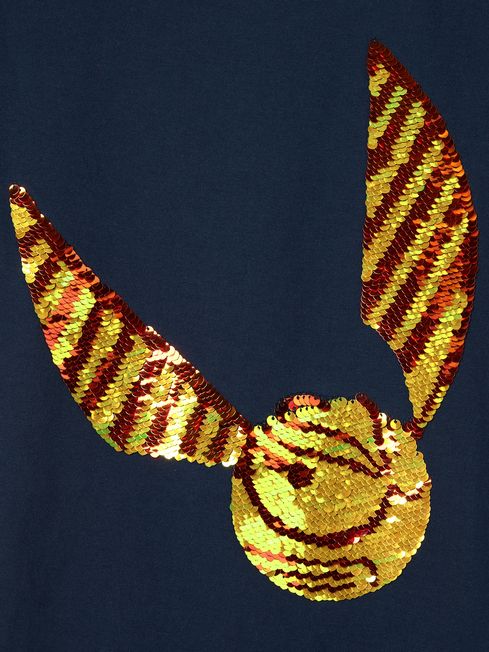 If you're seeking a top that will fill your little one's face with wonder, then you've found it. Part of our Harry Potter™ collection, it features a Golden Snitch™ adorned with gold sequins to the front. But when the sequins are swiped the other way, another colour will magically appear. As well as looking the part, it's practical too. With short sleeves, a crew neck, dropped shoulders and crafted from soft cotton jersey fabric it's a layer they will want to wear everywhere. Part of our official Harry Potter™ collection Cotton jersey Short sleeves with dropped shoulders Crew neck Two-way sequin Golden Snitch™ Branded tab to the hem WIZARDING WORLD and all related trademarks, characters, names and indicia © & ™ Warner Bros. Entertainment Inc. Publishing Rights © JKR. (s23)